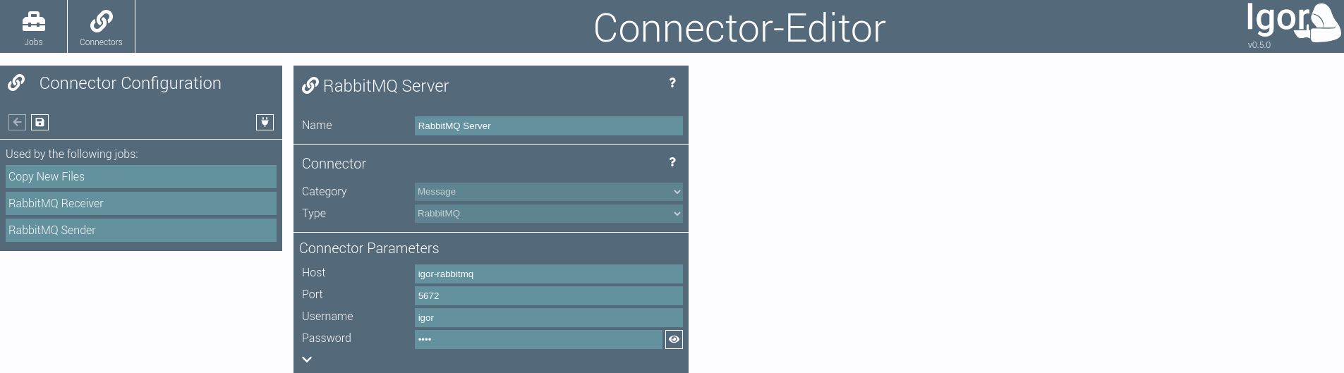 Below the top element is the list of jobs that use this connector. By clicking on an element in the list you can jump directly into the job editor for the corresponding job.